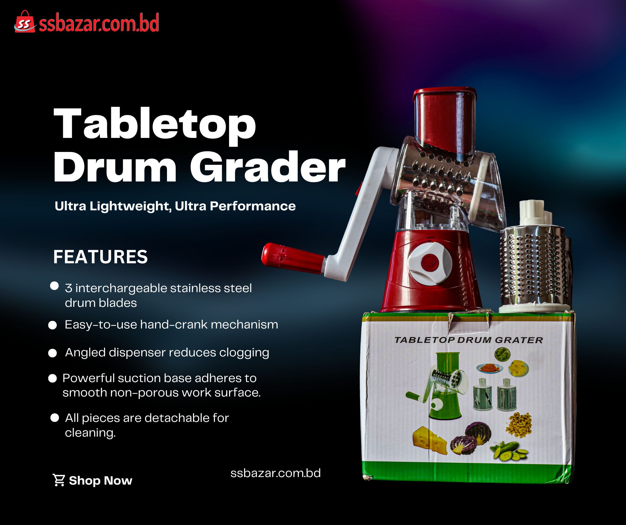 Tabletop Drum Grater is the ultimate kitchen tool for effortless and efficient grating. Designed to save time and effort, this compact yet powerful grater is perfect for grating cheese, vegetables, nuts, and more with ease. Featuring durable stainless steel drums, it offers multiple grating options, from fine to coarse, making it versatile enough for a variety of recipes. Its ergonomic handle and sturdy base ensure a secure grip and stability during use, while the tabletop design allows for hands-free operation. Ideal for home cooks and professional chefs alike, the Tabletop Drum Grater simplifies meal prep and enhances your cooking experience. Whether you’re preparing salads, garnishes, or ingredients for baking, this easy-to-use grater is your go-to tool for fast, uniform results every time!